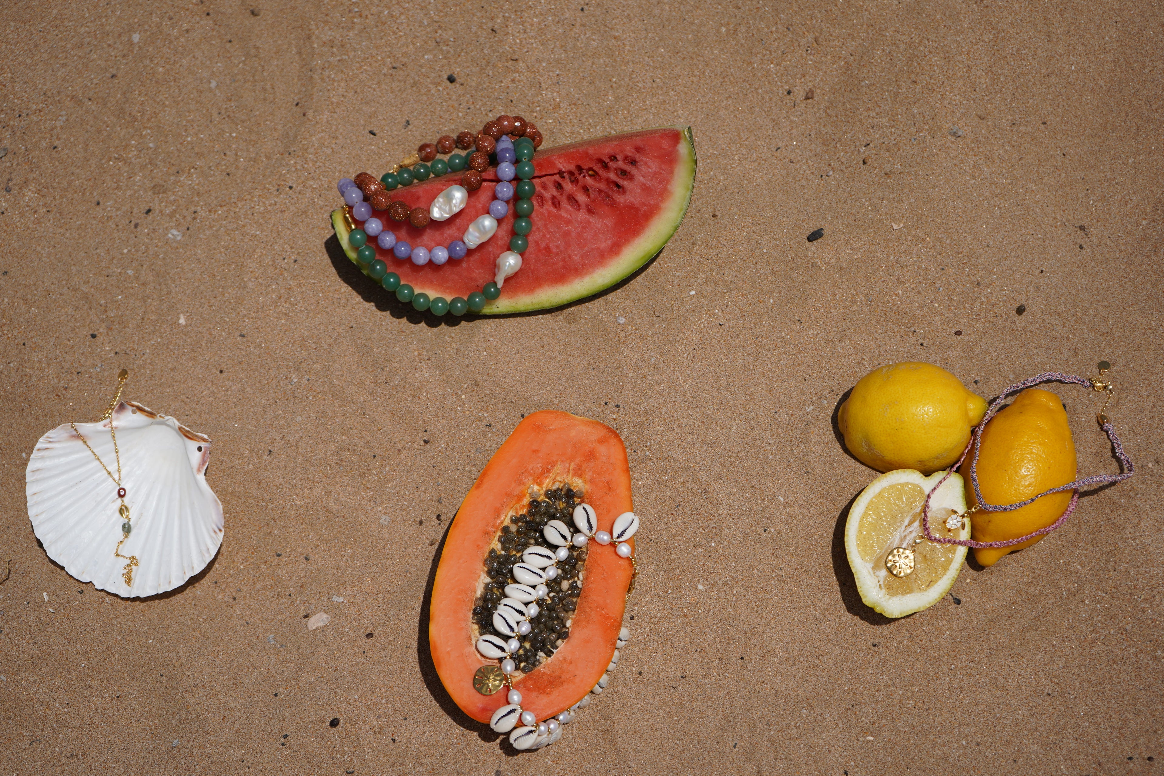 Creamos joyas bañadas en oro de 24k con perlas y piedras preciosas, muchas de ellas siendo ediciones limitadas.